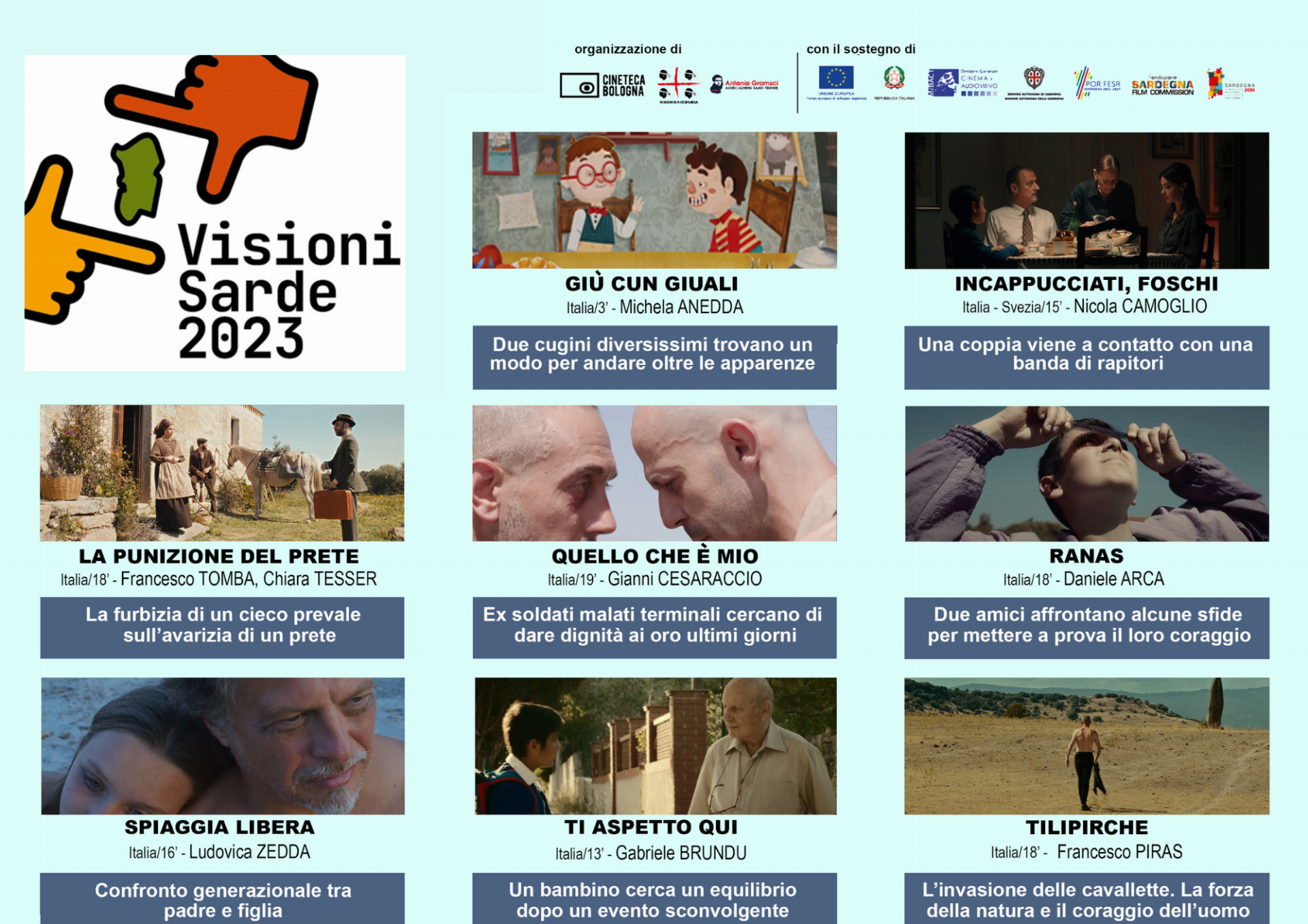 La rassegna itinerante “Visioni Sarde” è nata nel 2014 con l’obiettivo di raccontare la Sardegna attraverso il cinema e di valorizzare l’opera dei giovani talenti cinematografici sardi.